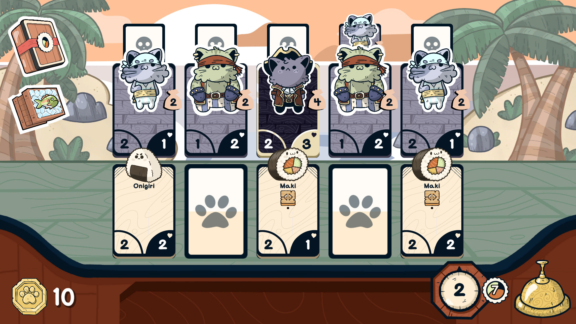 Upgrade and refine your sushi cards as you grow stronger with each run through Choppy Waters. Seek out rare ingredients and enhance your sushi-making prowess to face the escalating challenges that lie ahead!