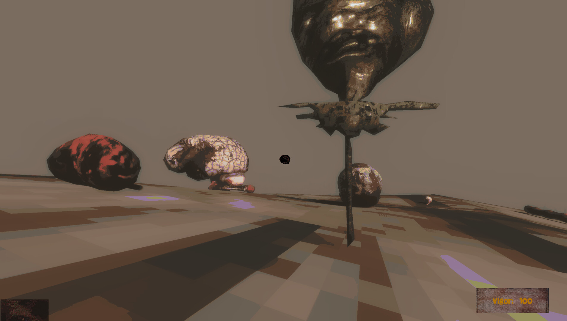 He is in awe of the memories that were implanted in him, which still haunt him to this day. There are small meaty boxes floating in his head. He’s constantly struggling to prevent himself from falling apart and decaying on the floor. But his suffering ends one day, when he becomes a god and finds a servant worthy of torture.